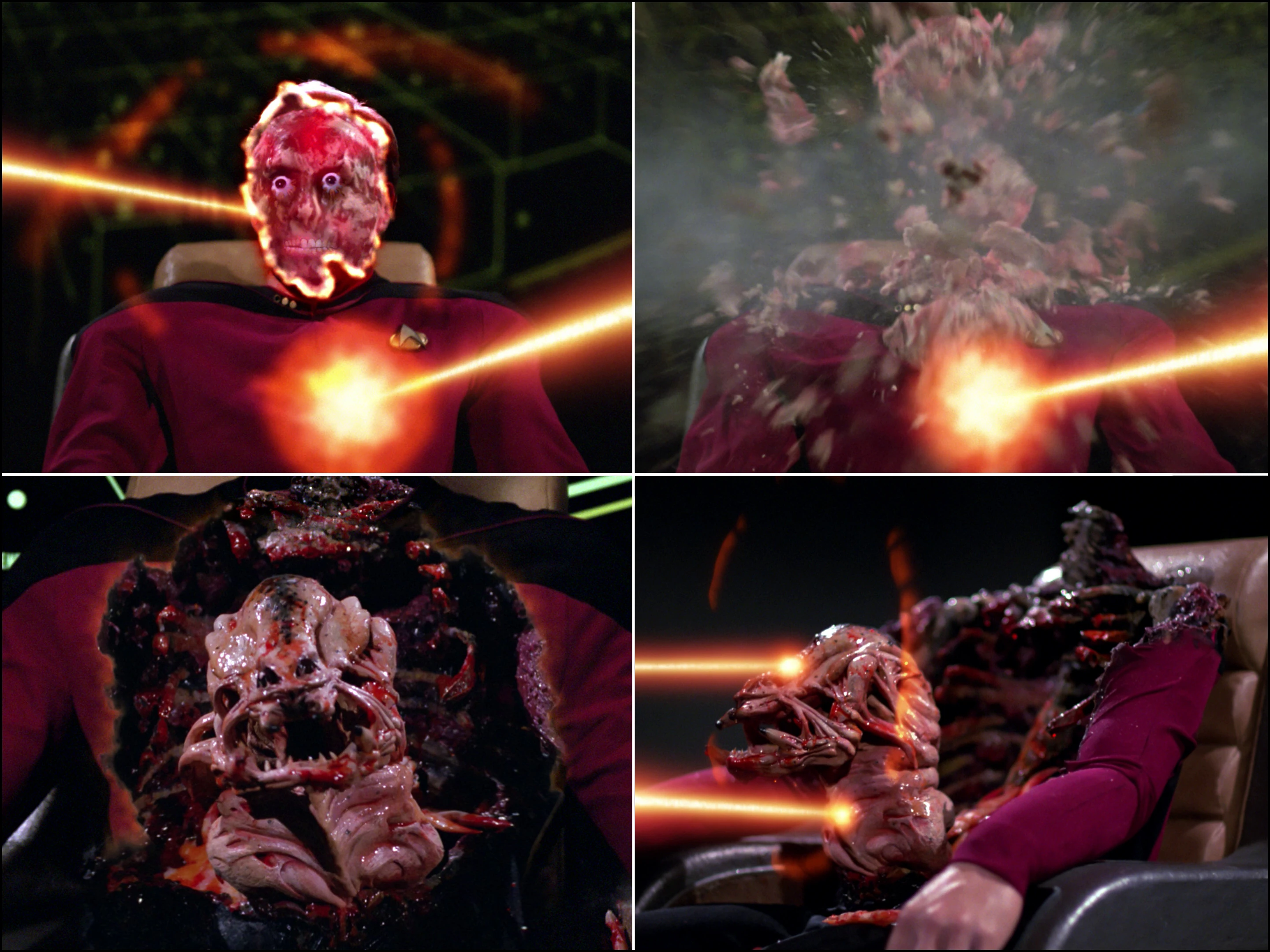 - The normal maximum setting on a hand phaser would vaporize a humanoid lifeform or a Human-size android with a single hit. (TOS: "What Are Little Girls Made Of?"; TNG: "The Vengeance Factor"; Star Trek: First Contact) This was also called disintegration. (ENT: "In a Mirror, Darkly, Part II") When used as a means of suicide, the phaser would also disintegrate along with the person shooting at himself. (TOS: "Elaan of Troyius") There was also a maximum setting that could set parts of clothing or humanoids on fire. (TNG: "Datalore", "The Wounded") Against a Horta, even when set specifically for silicon, the maximum setting would only hurt the creature. (TOS: "The Devil in the Dark") Disruptor-B was another maximum setting for the type 2 phaser. It was also called the disruptor effect setting. This setting was assessed to be the most effective against gaseous dikironium. (TOS: "Obsession")