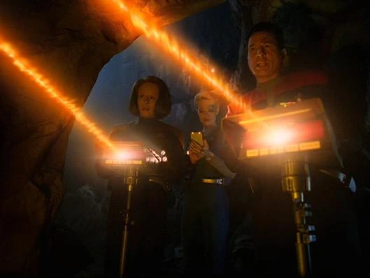 Hand-held phasers were also used by Starfleet personnel as tools and not just weapons. The phaser could be used to heat rocks and stones for warmth. (TOS: "The Enemy Within", "Spock's Brain"; TNG: "Final Mission"; VOY: "Parturition"; DS9: "Rocks and Shoals") While there were specialized tools like phaser bores and phaser drills, (TAS: "Once Upon a Planet"; VOY: "Once Upon a Time") Worf once used his type-2 phaser to open a tunnel on the Cardassian planet Celtris III. (TNG: "Chain of Command, Part I") A phaser, when fired together with another in tandem or set to a high setting could create an opening in a solid rock wall. (VOY: "Caretaker"; DS9: "Rapture"; Star Trek: Insurrection)