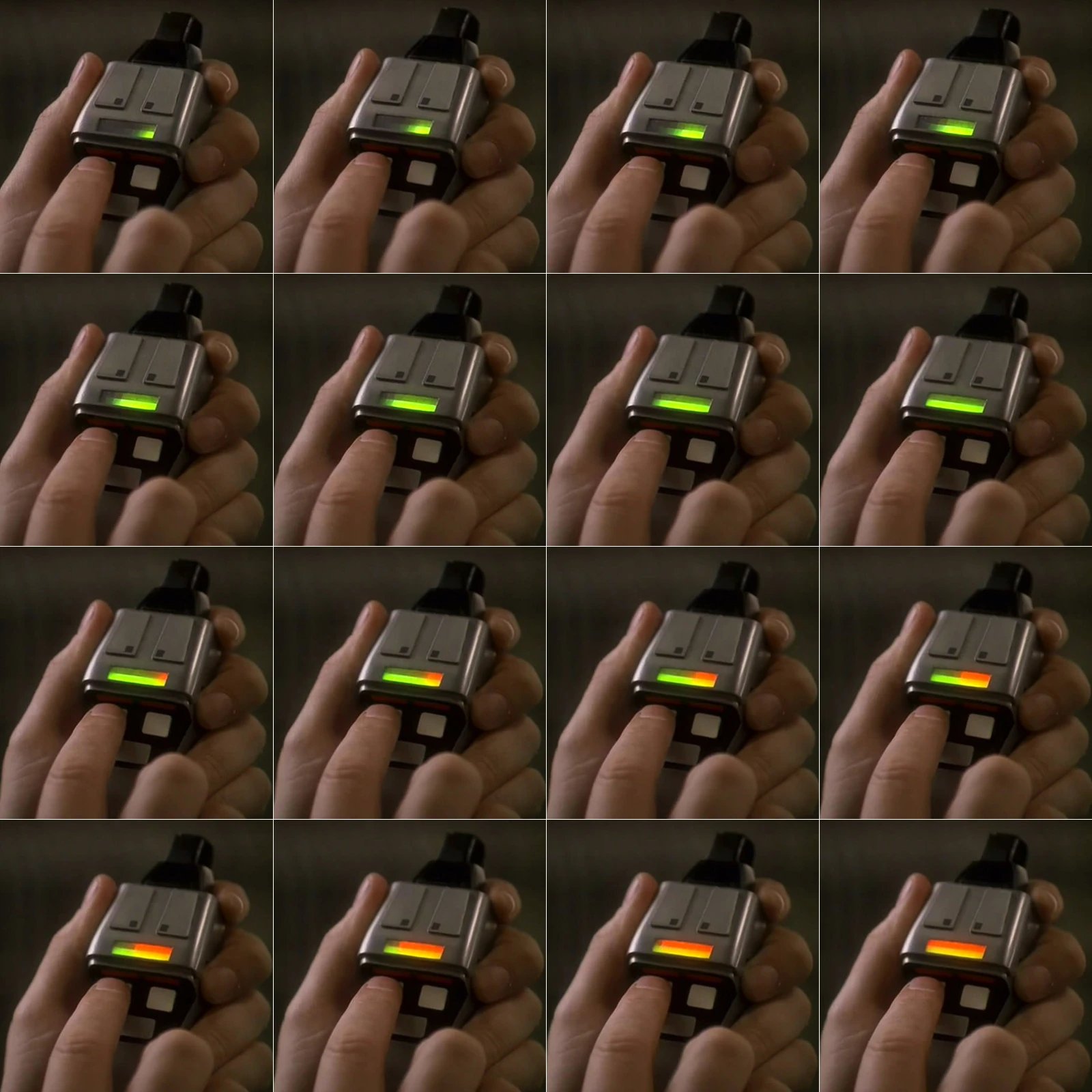 Phasers had an adjustable resonance frequency. When modified, the color of the beam changed. Borg systems were vulnerable to a frequency spread in the high narrow band, but compensated for the weakness after Locutus was assimilated in 2366. (TNG: "The Best of Both Worlds") In 2367, the phaser adapter was designed, a chip that automatically retuned the phaser to a random setting after each discharge. Using the adapter, phasers were set on a rotating modulation to allow at most twelve shots to penetrate Borg shielding before they adapted. (TNG: "The Best of Both Worlds, Part II"; Star Trek: First Contact; VOY: "Scorpion")